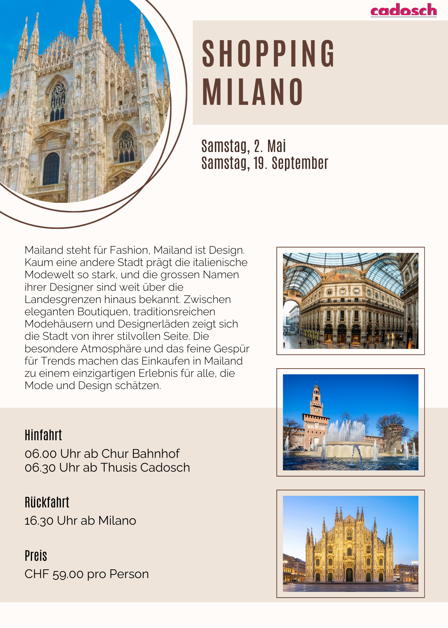Mailand steht für Fashion, Mailand ist Design. Kaum eine andere Stadt prägt die italienische Modewelt so stark, und die grossen Namen ihrer Designer sind weit über die Landesgrenzen hinaus bekannt. Zwischen eleganten Boutiquen, traditionsreichen Modehäusern und Designerläden zeigt sich die Stadt von ihrer stilvollen Seite. Die besondere Atmosphäre und das feine Gespür für Trends machen das Einkaufen in Mailand zu einem einzigartigen Erlebnis für alle, die Mode und Design schätzen.